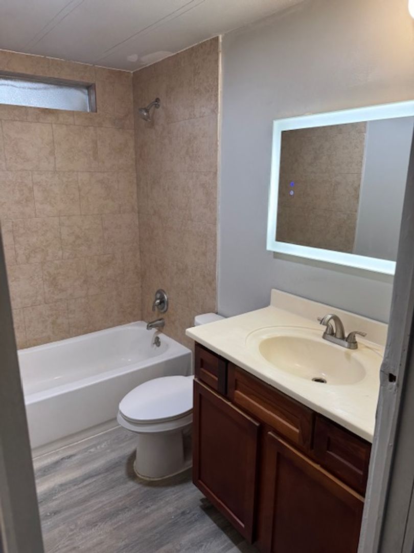 Recently renovated 4 bedroom 2 full bath double-wide is over 1300 sq ft. Very spacious fenced in lot with tons of room for outside entertainment! Home has all wood plank/vinyl flooring, open kitchen and dining area with lots of natural light. W/D hook-ups. Large outside shed with plenty of room for a workshop. Resident Benefit Package (RBP) included with monthly rent. Call today for more details!