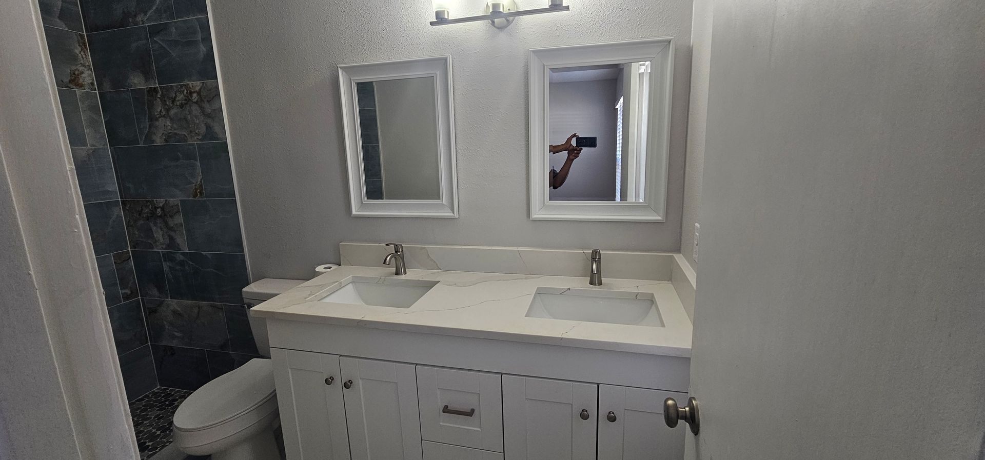 Newly remodeled 3/2/1. Fresh paint in & out, new Carrerra Quartz kitchen countertops with snack bar and eat-in kitchen. Remodeled baths with new vanities, all new luxury vinyl waterproof wood-look plank and tile throughout.